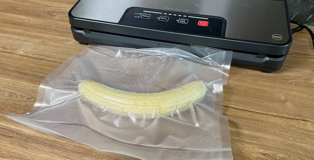 Banaan wordt bruin na het vacuum verpakken door de oxidatie. Als je banaan vacuum verpakt, snijd het dan in stukken en gebruik het binnen enkele dagen. Het is beter om banaan vers te eten of gebakken te consumeren.